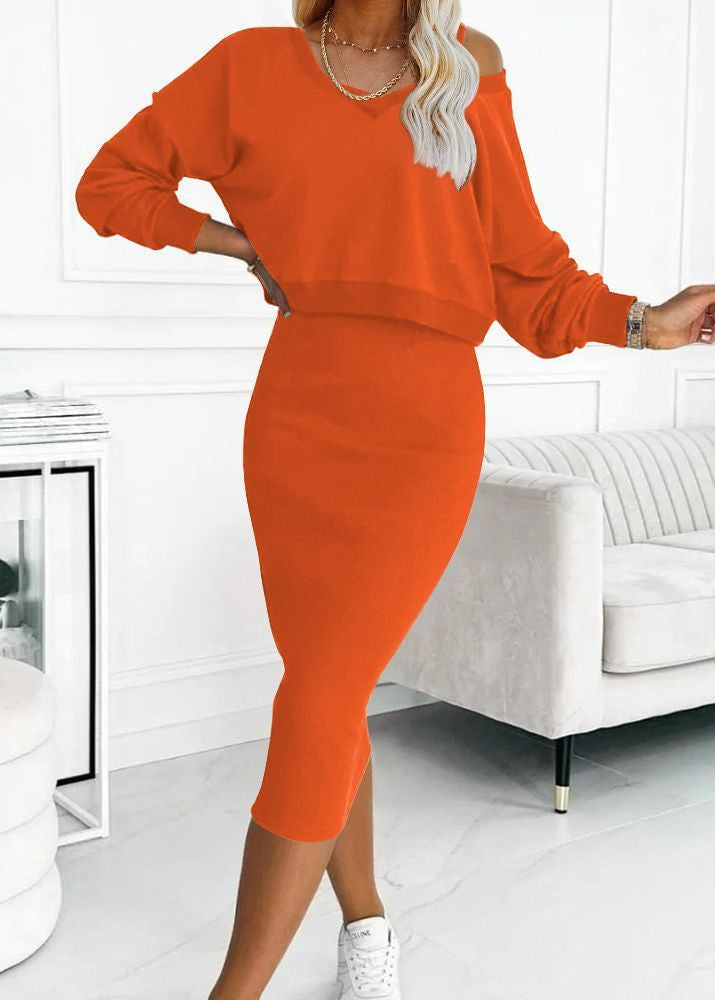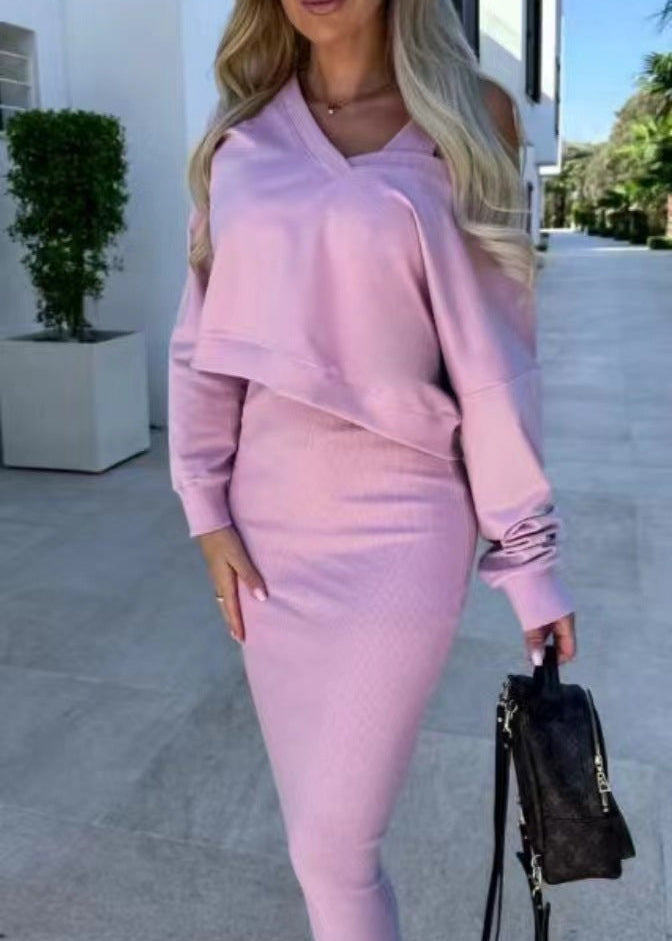 La robe sans manches, coupée près du corps, se marie parfaitement avec le pull ample à col V pour un style moderne et féminin. Portez-les ensemble pour un ensemble harmonieux, ou mixez-les séparément pour multiplier les tenues : la robe seule avec des talons, le pull sur un jean…
